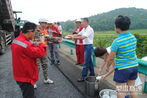 5月29日,东乡管理处组织到梨温高速东乡收费站改造施工现场,给不顾高温酷暑奋战在一线的施工人员送去了冰绿豆汤等降温食品,为他们送去一丝清凉。