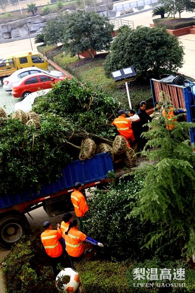 3月11日这天,梨温公司机关“生态园”也种下了近百棵桂花树、樟树等树,一排排秀美绿色的希望之林,一片片生态文明的绿色之林,正向着高速公路的远方延伸。(梨高)
