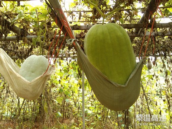 一个蛇皮袋,四根绳子,作成了一个简易的冬瓜防掉保护袋。近日,为防止冬瓜长大掉落,梨温高速进贤收费站奇思妙想,通过细心呵护,帮助一个个冬瓜长大,等待着丰收。