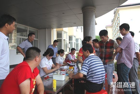 8月12日,梨温公司组织职工参加无偿献血活动。现场干部带头,职工踊跃,共来自公司机关、东乡处和鹰潭处等50余人参加了这次献血活动。