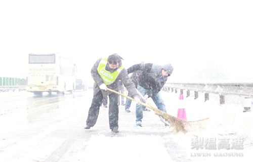 风雪高速路 梨温高速组织人员扫雪除冰忙