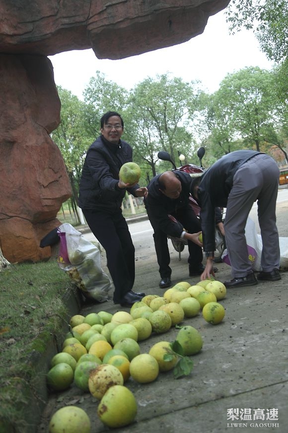 入冬以来,梨温公司生态园内因雨量充沛,植物生长茂盛,特别是柚子树,结满了黄橙橙的柚子,引人驻足观赏。据统计,一颗柚子树结了四五十颗柚子,仅生态园养殖场一侧就并列了十余株大柚子树,散落在其它地方的柚子估计数量更可观。为庆祝这看得见的柚子丰收,机关党小组现场准备了十几个大麻布袋子,装满后用轻型货车运往办公室、食堂。