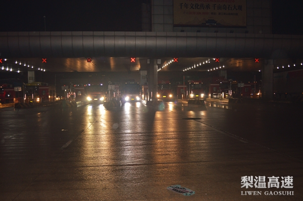 2月4日零时,被誉为“江西东大门”的梨园省界收费站吹响了春运保畅的号角,远方天空夜雨濛濛的寂静与收费站车来车往的喧嚣形成鲜明对比,24个收费车道一字排开,21个车道亮起了可通行标志,其中13个出口通往浙江和上海方向,8个入口通往江西境内,收费广场的车辆首尾相接,在不同的车道上排成一条条长龙,收费班长穿着反光背心站在安全道上,指引着由车辆有序地驶入车道,绿通车道的验货人员组成的“战术小组”,爬梯子、掀帆布、钻车厢,身手娴熟而敏捷,车道上风声呼啸,摄像头不断发出的闪光照亮了收费员通红的脸庞,岗亭内的微笑因朦胧显得更加甜美,“接卡—收费—送行”一套动作只用了不到30秒,据悉,这一夜截止至上午8时,梨园收费站车流量达2304辆,其中货车1394辆,在岗人员22人,早上8点,刚下班的收费员小周告诉我们,这个8小时晚班他一直神经紧绷,不敢有一丝怠慢,因为稍有延误就可能导致拥堵。