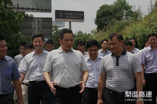 6月29日,炎炎烈日中,上饶市委书记陈俊卿率队就城市入口景观改造工作赴梨温高速设立在上饶境内的各收费站开展调研。随行人员主要有上饶市委常委、市委秘书长汪霞、市委常委、副市长廖其志、副市长朱寅健,市委、市政府副秘书长,市发改委、建设局、交通局等9个相关部门负责人。梨温公司总经理潘皓、副总经理俞毓玲陪同。