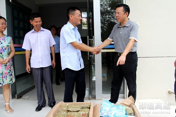 8月19日,骄阳似火,省高速集团党委书记王江军在梨温公司相关领导的陪同下,来到梨温高速路面施工现场、收费站等地方,慰问一线员工,为他们送来了“清凉”和关怀。