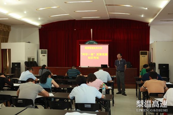 本次考试共设赣浙、玉山、上饶、鹰潭、东乡和机关六个考点,采取支部书记交叉监考、闭卷考试和集中阅卷的形式进行。各考场监考人、支部书记们则在机关考点提前考试,并由公司党委副书记、纪委书记雷霆担任主考。