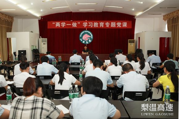 8月11日,梨温公司鹰潭管理处一楼会议室掌声不断,气氛热烈。 为持续推进“两学一做”学习教育,扩大基层学习效果,当日下午,党委书记周洪达同志来到鹰潭管理处为该处党员以及广大员工上了一堂专题党课。