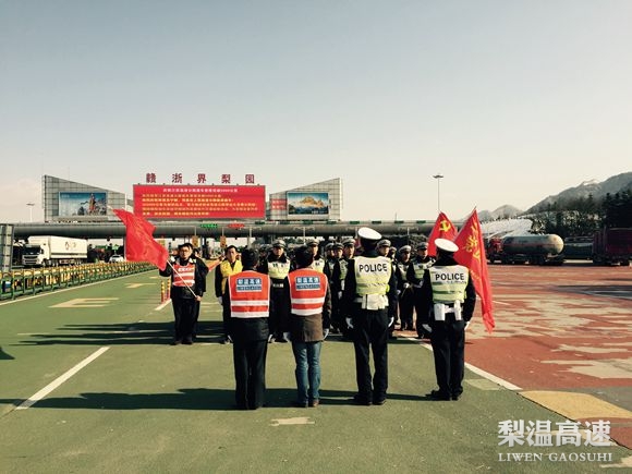 1月24日,赣浙界梨园收费站联合省界交警开展了春运启动仪式。双方预计,2016年赣浙界梨园收费站春运期间出入口车流量预计达到134万辆次,比去年同期增长5%。