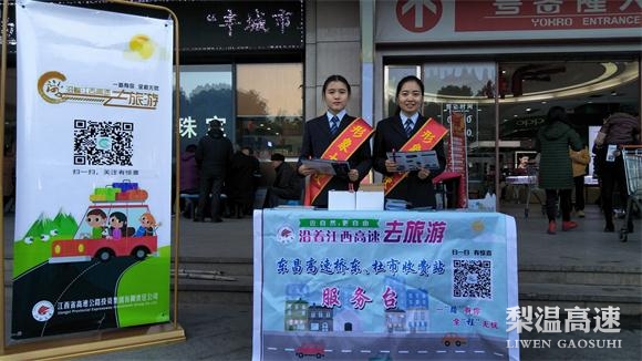 12月21日,南昌南中心桥东、杜市收费站以“走出去,请进来”的理念,在丰城市区联合开展 “沿着江西高速去旅游”推广活动。