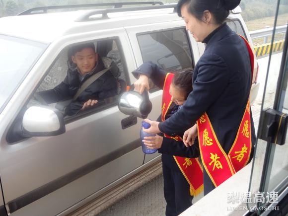 “师傅,天气这么冷,喝点热水暖和暖和。”1月31日,南昌南管理中心杜市收费所组织党团员青年开展了“春运路上 我们与您同行”为主题的便民服务活动。