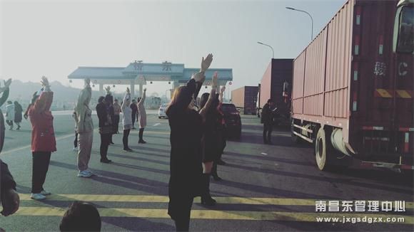 11月29日上午8点,一首《眉飞色舞》在南昌南管理中心桥东收费站收费广场响起,原来大雾导致高速公路封闭,一群出门旅游的丰城大妈们滞留在收费站广场,为了打发时间,她们在收费广场上跳起了广场舞。