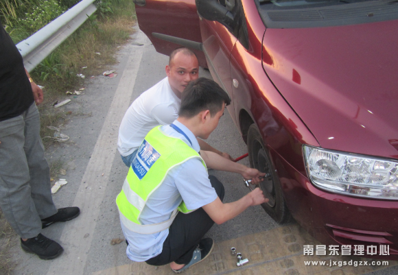 该站工作人员得知此情况后,安慰车主不要着急,连忙从岗亭便民箱内拿出修车工具,二十分钟后,前胎松动螺丝已全部固定住,并检查了其余轮胎螺丝是否有松动情况,确保行车安全,该车主对工作人员的热情帮助表示连声道谢。