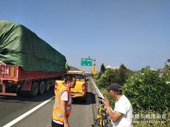 8月23日上午,南昌南管理中心玉山养护站工作人员巡路至K508右幅,发现一老人在高速公路硬路肩骑车,十分危险。