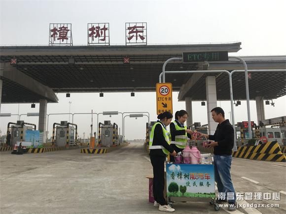 滞留在收费广场的司乘人员称赞樟树东收费站的服务令人感到温暖。(邓瑶晴)