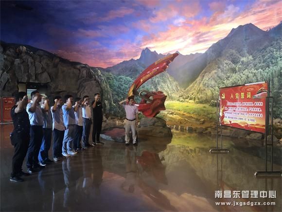 该所全体党员在南昌市新四军旧址陈列馆内举起右拳,面对中国共产党人抛洒热血之地,齐声重温了自己的入党誓言,坚定信念、永葆初心。