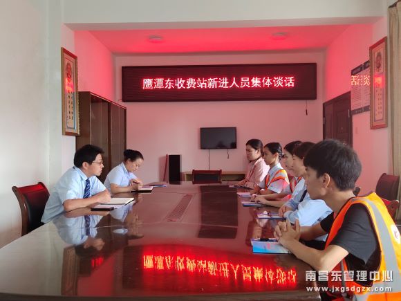 为规范新进人员工作标准,增强服务意识、担当意识,9月15日,南昌南管理中心鹰潭东收费站组织对新进的5名劳务派遣人员进行岗前集体谈话。