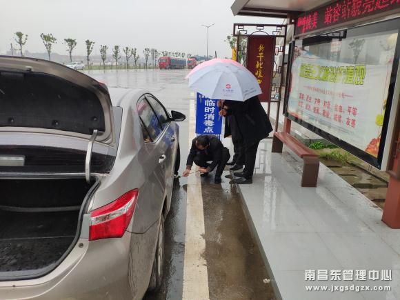 1月16日下午16:40时,一辆从上海方向行驶来的小车在南昌南管理中心新干北收费站下高速时,车子突然往右边倾斜,细心班长发现后,立即引导车辆慢慢驶离收费站,停靠在安全地带,并协助车主排查原因。