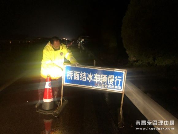 在沪昆高速、东昌高速已经昌宁高速连接线,该中心每个养护站配置组建了一支20人以上的应急保畅队伍,严格待命,所属各养护站均提高日常巡查频率与力度,其中,夜间巡查2次以上,并着重对容易结冰的桥梁、路段定期进行温度检测,摆放安全标志牌,发现结冰情况立即消除隐患,确保降低行车风险。