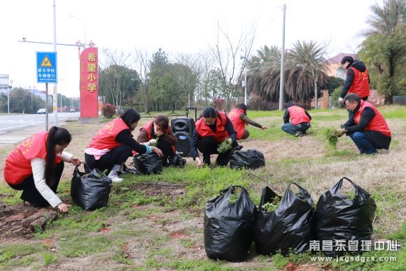 为了不影响学生正常上课学习,党员和志愿者们在希望小学门口,带着手套、拿着垃圾袋等工具,一边聆听党史故事,一边清理小学门口绿化带,将藏匿的“烟头纸壳”捡拾出来、生长茂盛的杂草连根拔起,装进垃圾袋里。
