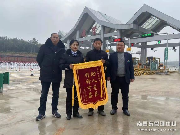 12月29日,进贤县付某将印有“助人为乐,精神可嘉”的一面锦旗送到省交投集团南昌南中心进贤收费站杨群手中,感谢高速收费站工作人员在危急时刻的及时帮助。