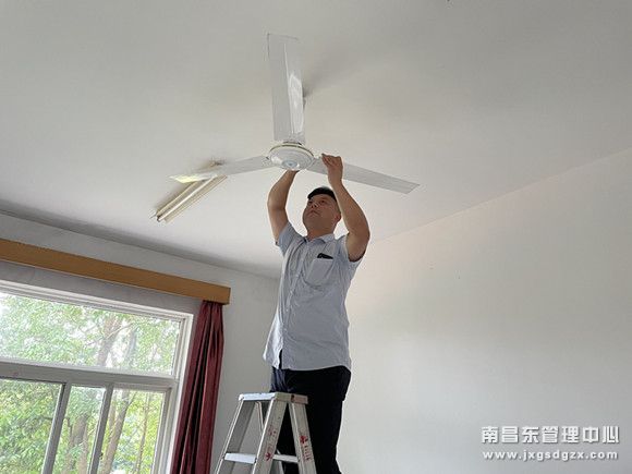 “我宿舍空调不制冷”、“我宿舍电风扇坏了”。近日,在进贤收费站微信工作群里的职工烦心事不断,职工宿舍电风扇、空调因年份较长电容器老化,不制冷、没法使用等;该站及时了解情况并统计向所里汇报,当购买的电风扇没人安装时,进贤收费站懂电工的员工积极主动为各宿舍安装电风扇,在炎炎夏日也为员工带来一丝清凉。