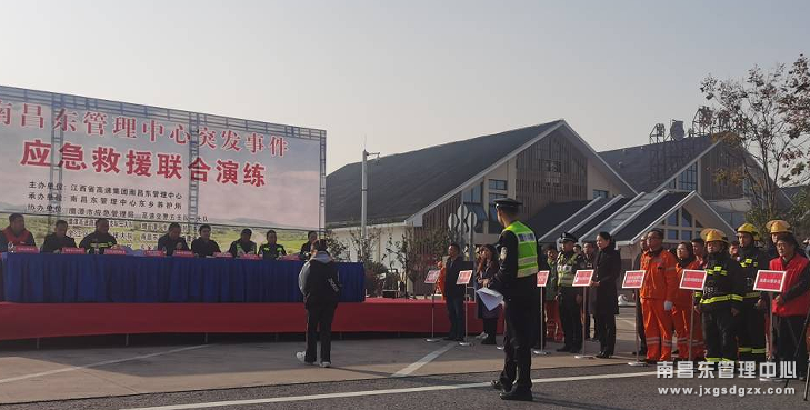 12月10日,南昌南管理中心联合高速交警、路政、消防、服务区和地方应急管理部门等多家单位,在沪昆高速龙虎山服务区开展突发事件应急救援联合演练。