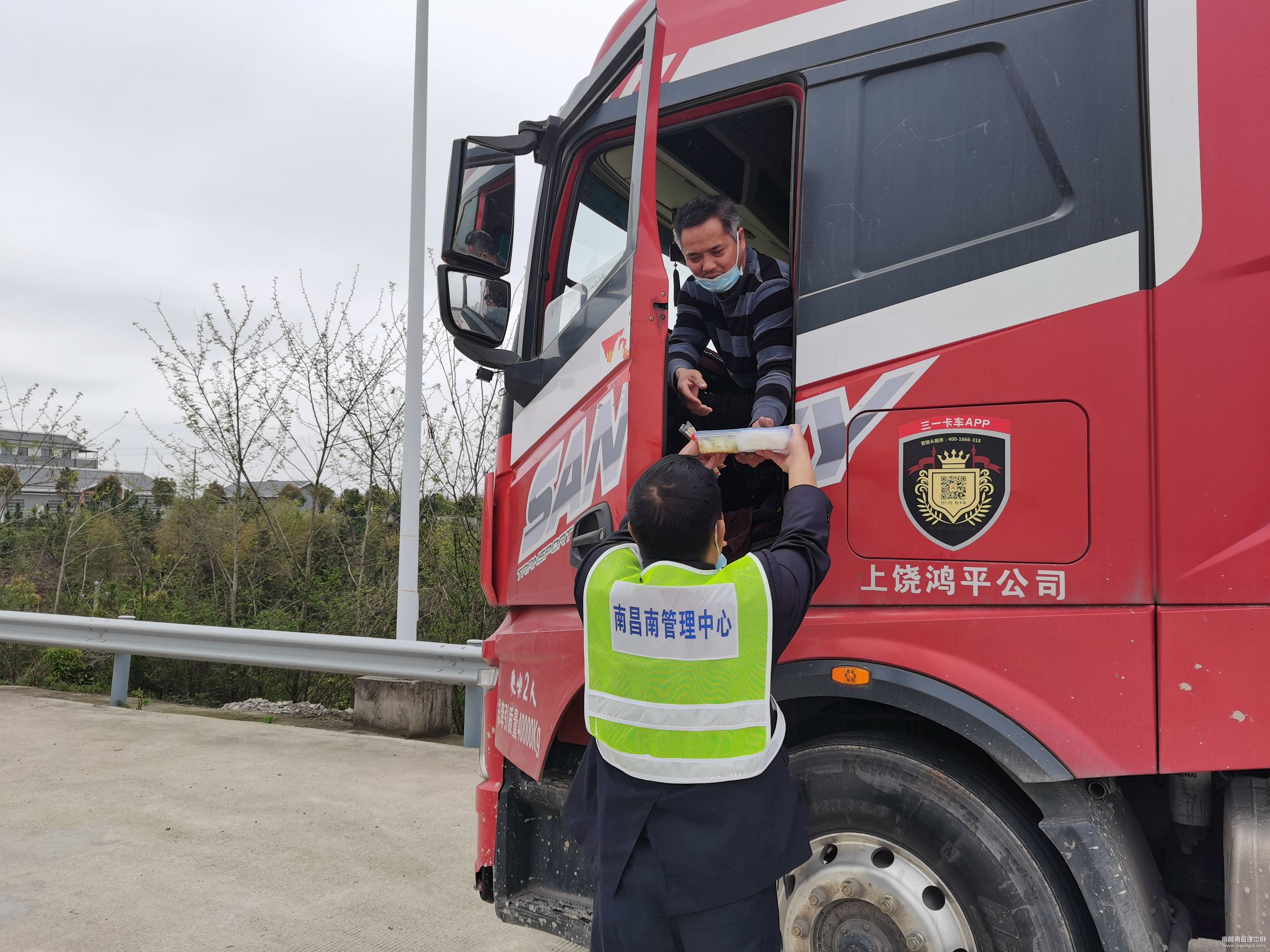 中午12点,陈仁和看到该车一直停在入口收费广场,就上前劝说司机找人来驳货,减少车重再上高速。看到司机师傅还没有吃饭,即刻从食堂打来热菜热饭给他。司机接过饭菜后再三表示感谢。