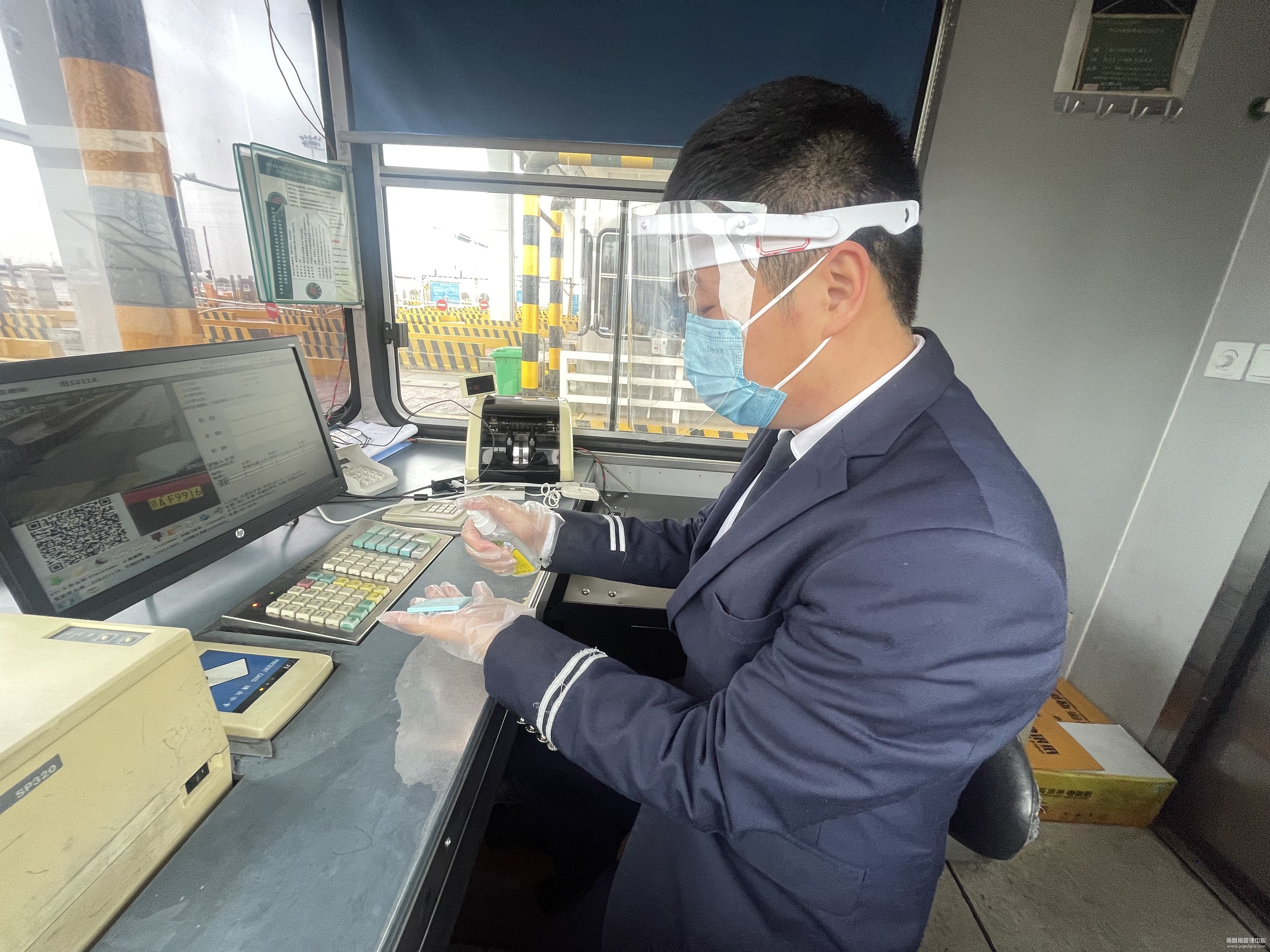 他不怕苦、不怕累,戴着口罩、拿着消毒液喷壶对岗亭、车道进行全方位消毒、严格对回收的每一张CPC卡进行消毒工作。还对地下通道、休息室、卫生间等地用消毒液进行喷洒擦洗消毒,努力保障大家在安全的环境中工作。除了定时消毒,他还充当起“宣传员”,不时叮嘱班员们科学佩戴好口罩,防护手套,并为他们进行体温检测。他说“我们首先自己要做好防护,才能让家人安心,让同事和司乘人员放心。”
