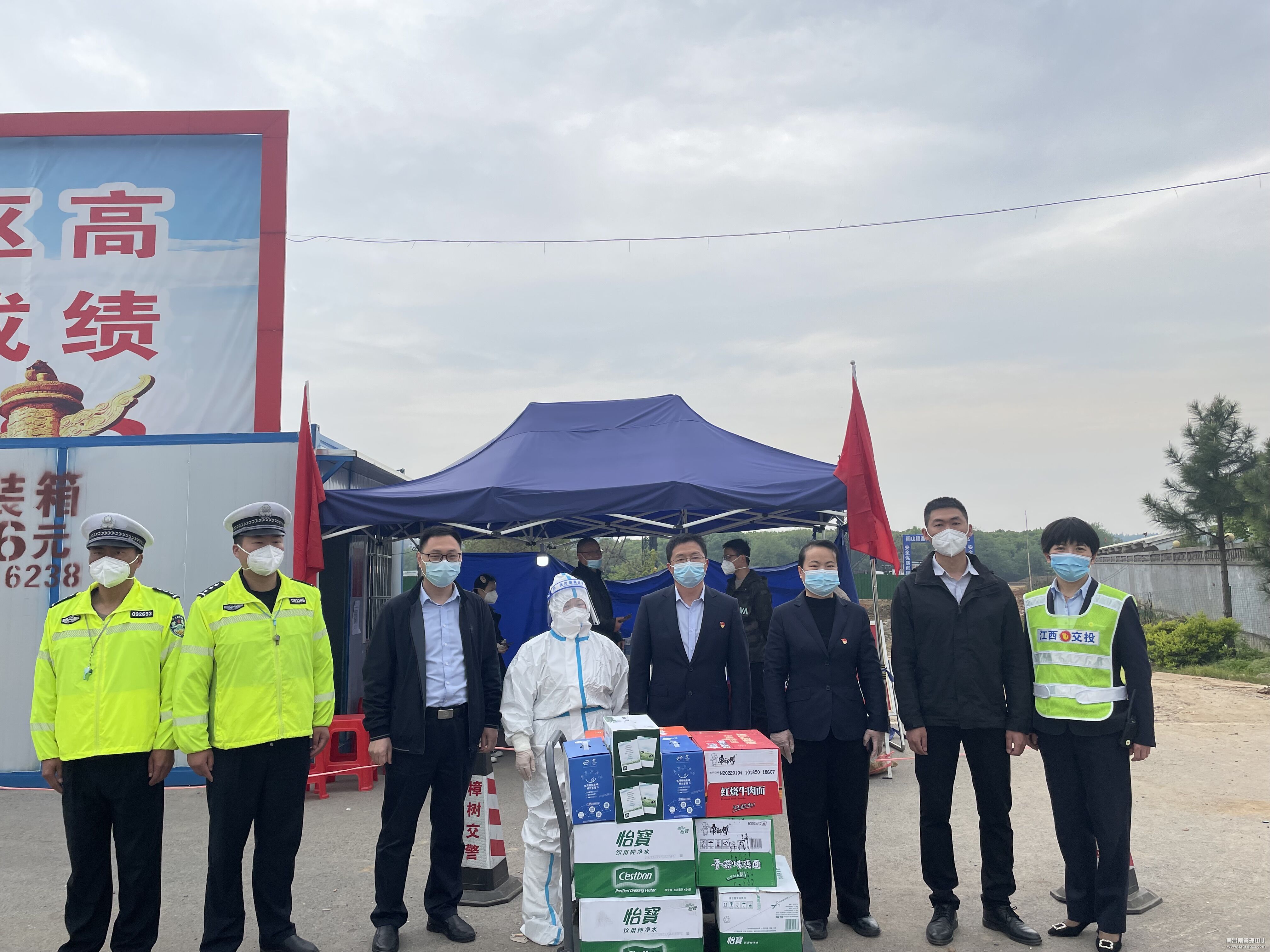 当天上午,该所党支部前往驻点在樟树东收费站附近的疫情防控检查点,对坚守在防控一线工作人员进行慰问,给他们带去方便面、牛奶、矿泉水等物资,向所有疫情防控一线工作人员致以诚挚问候和衷心感谢。