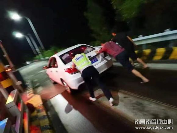 7月14日晚,一辆白色小车在南昌南管理中心杜市收费站出口车道因故障无法发动,导致不能驶离高速公路,该站收费员见状主动帮助车主,用自己的“一臂之力”帮助司机顺利驶离高速,保障了司机和其他来往车辆的安全