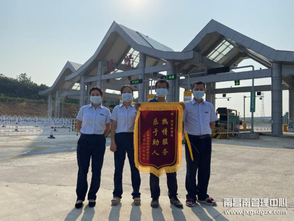 近日,一名驾驶员将一面锦旗送到江西交投南昌南管理中心进贤收费站工作人员手中,并对该站的热情服务表达诚挚感谢。