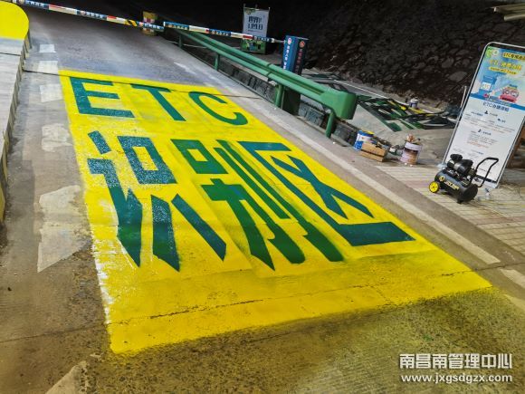 南昌南管理中心余江收费站入口车道ETC识别区地面油漆由于长时间风雨冲刷,出现剥落、掉漆的现象。为维护站容站貌,保障过往司乘安全舒适通行,近期该站组织“粉刷队”对地面字样进行重新刷漆。