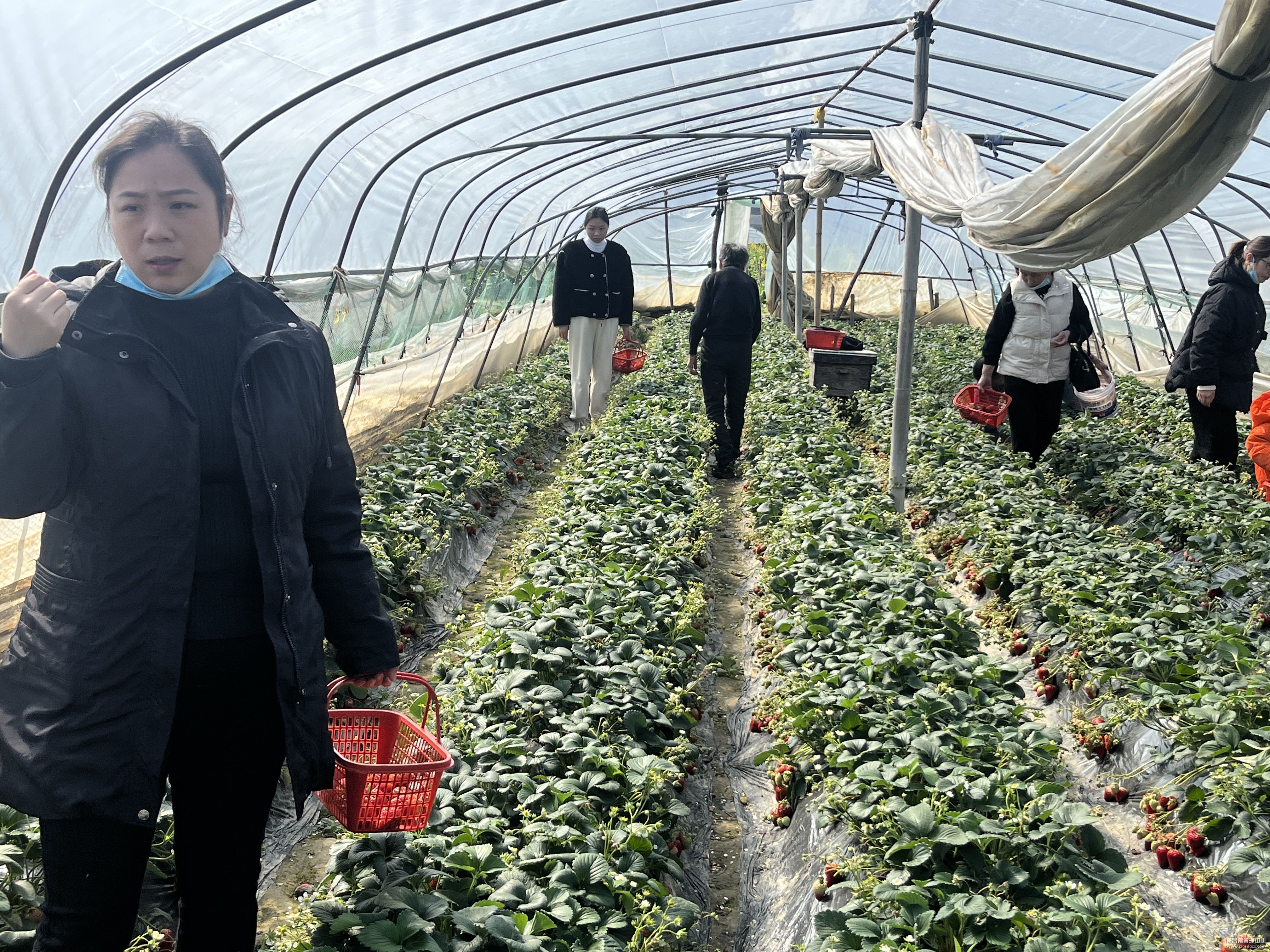 3月8日上午九点三十分,大家统一乘车来到了草莓基地,一到基地看到鲜艳欲滴的果实,大家都迫不及待地拿起了篮子开始行动,女同胞们一边采摘草莓一边交流关于草莓的成熟、采摘和如何保鲜及制作草莓酱等方面的知识,气氛非常活跃,大家都沉浸在快乐之中。一个小时后,每个人都有了丰硕的成果。