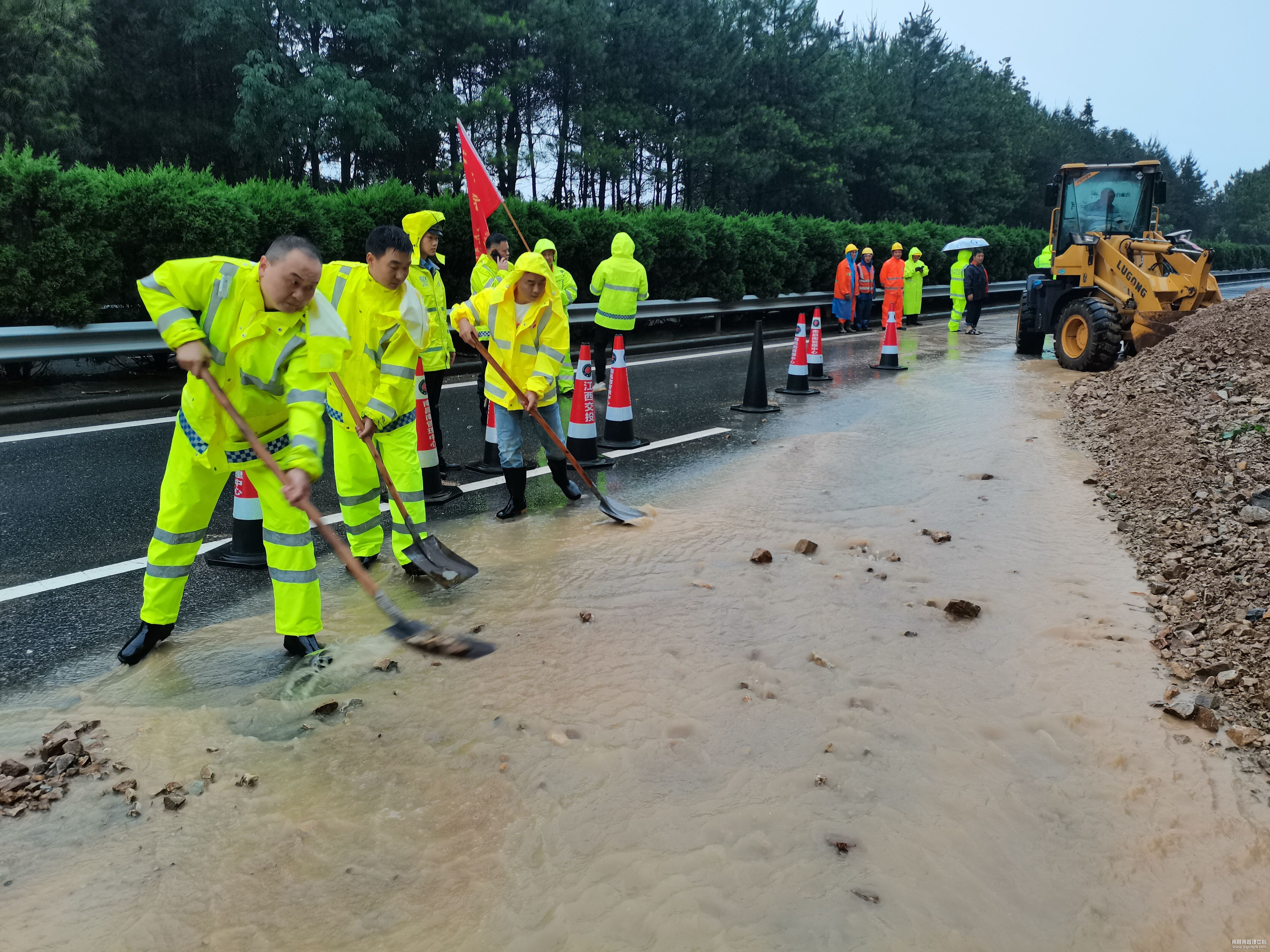 玉山养护站:高速公路边坡发生水毁 养护员全力保通