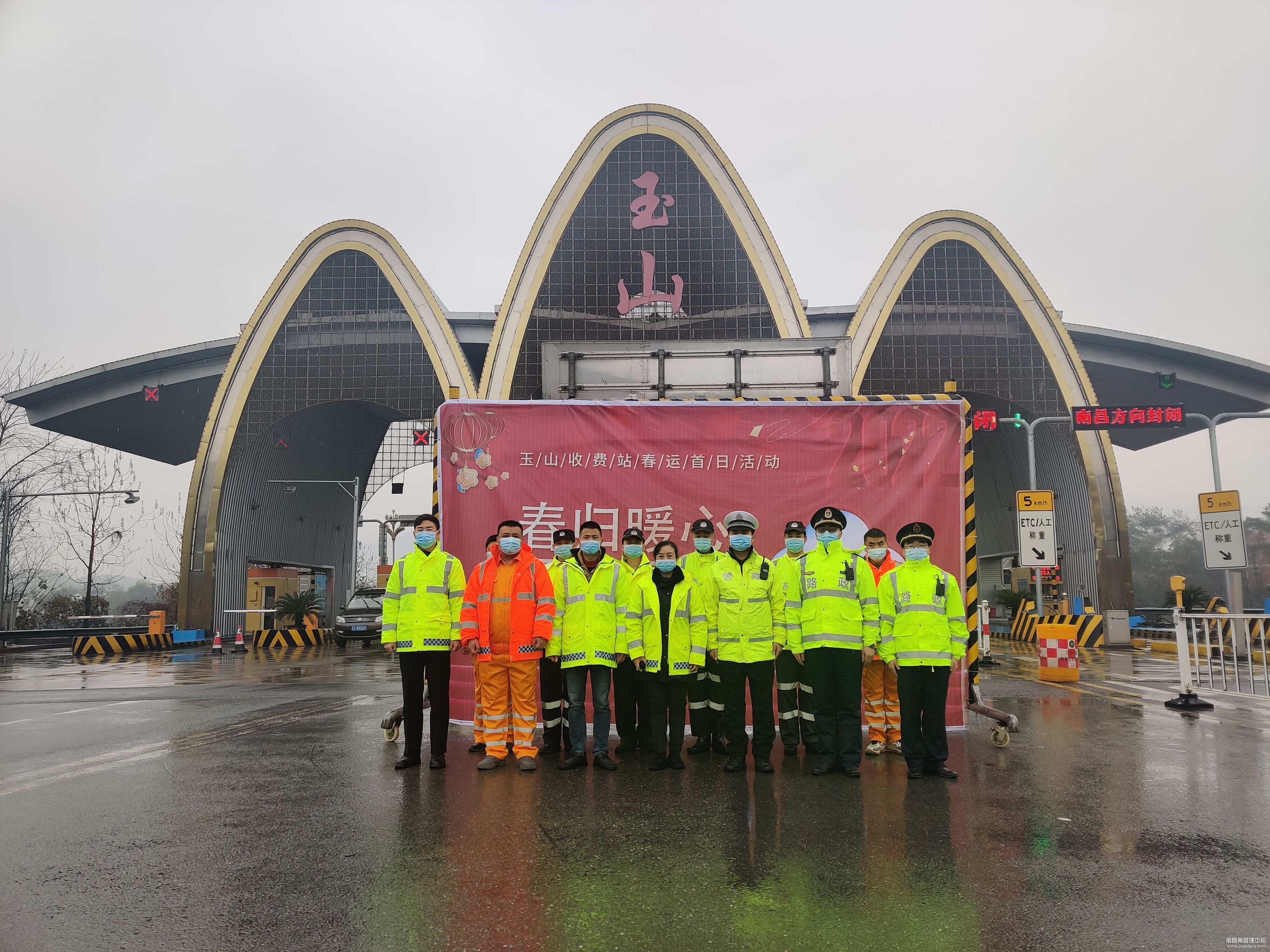 1月17日,是2022年春运第一天,南昌南管理中心玉山收费站联合高速交警直属五支队第二大队、玉山县交警大队铁骑中队、上饶路政支队四大队、南昌南管理中心清障救援队玉山中队开展“春归暖心,运途畅行”春运主题首日活动暨2022年春运保畅启动仪式。