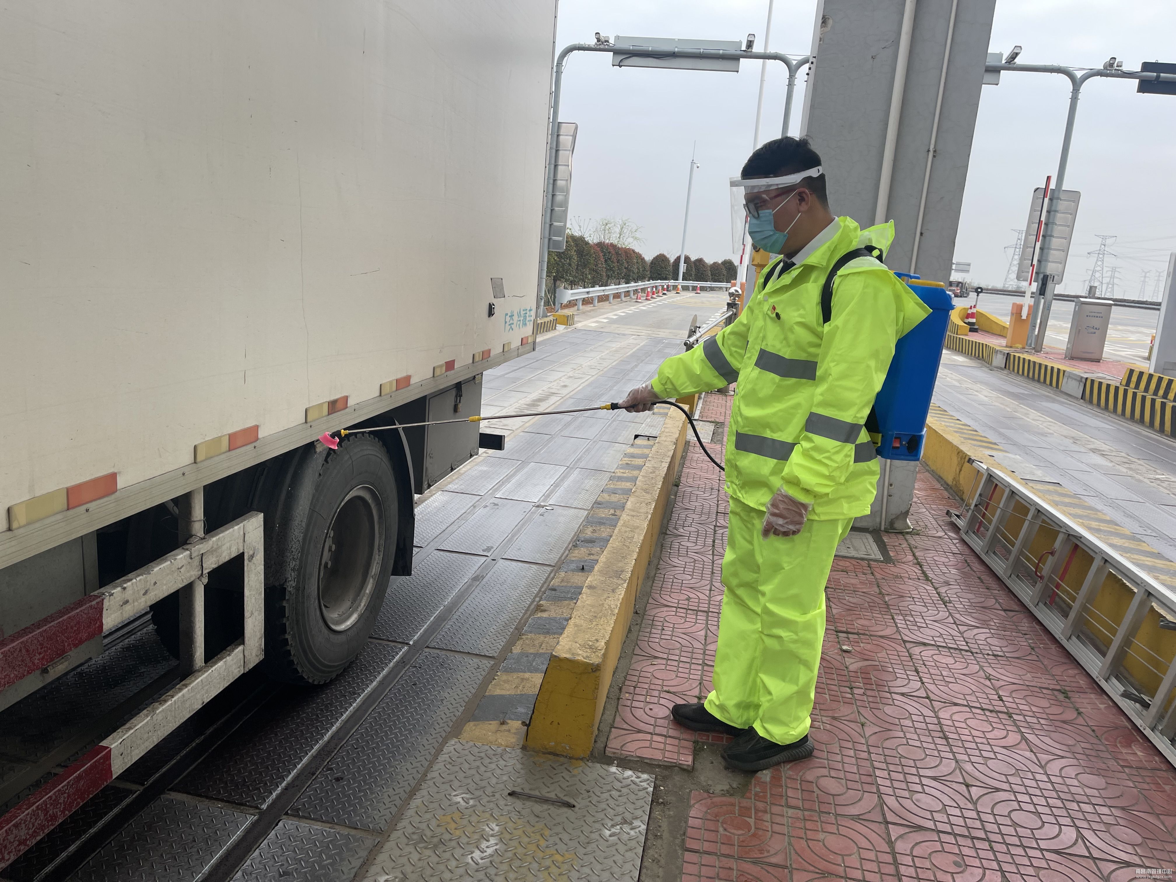 “您好,按照疫情防控要求,现在不能上高速,请您返回。”为阻断疫情输出扩散,南昌南收费所联合高速交警在收费站入口设立临时管制卡点,该所党员突击队与高速交警周密配合,做好车辆和人员的引导、登记及劝返工作,坚决守护好疫情防控安全通道。同时开辟绿色通道,保障防疫、医疗、救援、运输物资等车辆优先通行,并积极宣传引导司乘人员做好安全防护,为打赢这场没有硝烟的战争贡献积极力量。