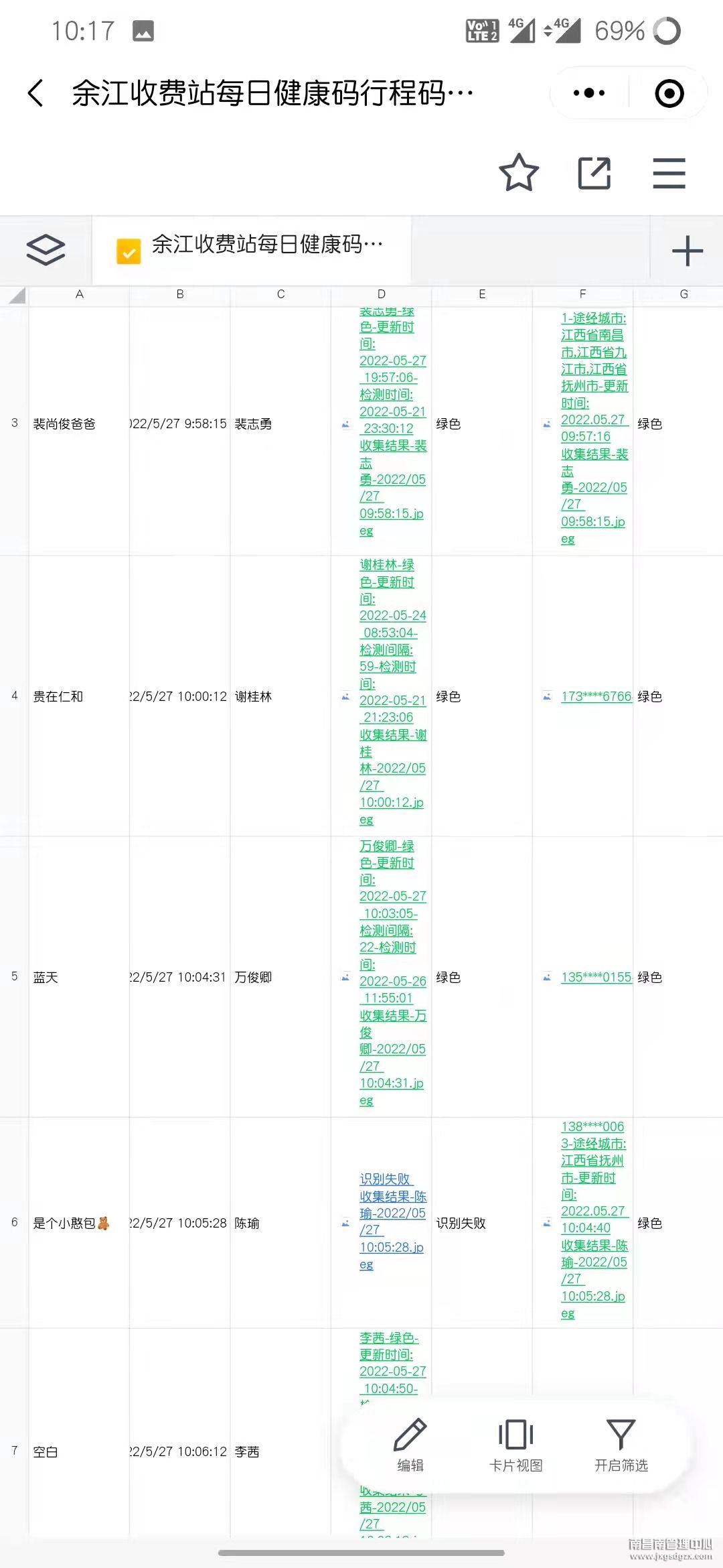 为有效落实疫情防控工作要求,及时掌握职工身体状况和疫情防控情况,南昌南管理中心余江收费站科学运用腾讯文档小程序,准确、快捷、高效统计职工防疫信息。