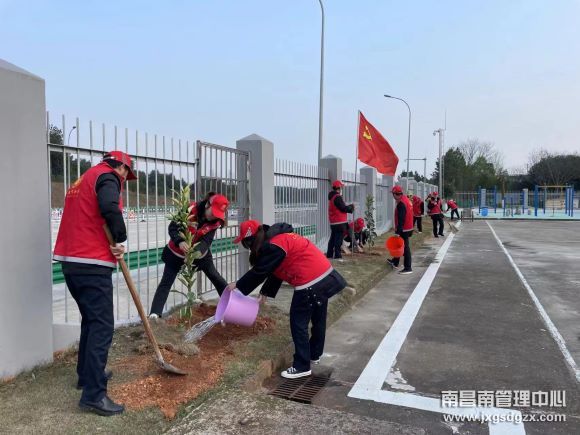 近日,南昌南中心进贤收费站党小组成员及在站员工开展植树活动。