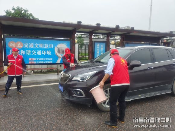 4月28日,樟树东所党支部组织党员前往新干北收费站收费广场开展“为司乘免费洗车”志愿服务。党员们分工明确,用高压水枪清洗车身、车轮等地方的泥沙,然后喷洒泡沫,用海绵、抹布擦拭清除污渍。细心地为每辆司乘的车清洗干净。