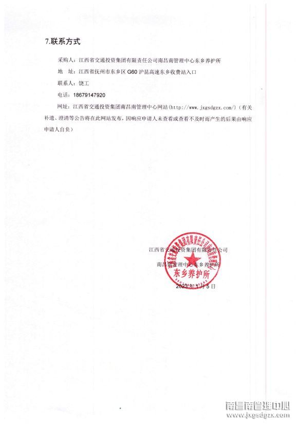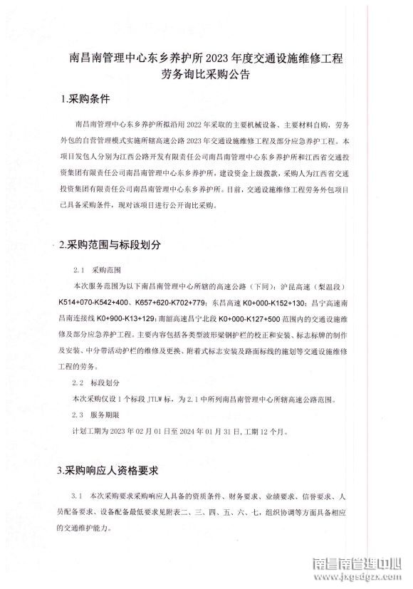 上一篇:南昌南管理中心2022年养护专用设备采购项目采购公告(第二次) 下一篇:南昌南管理中心东乡养护所2023年度交通设施维修工程劳务二次询比采购公告