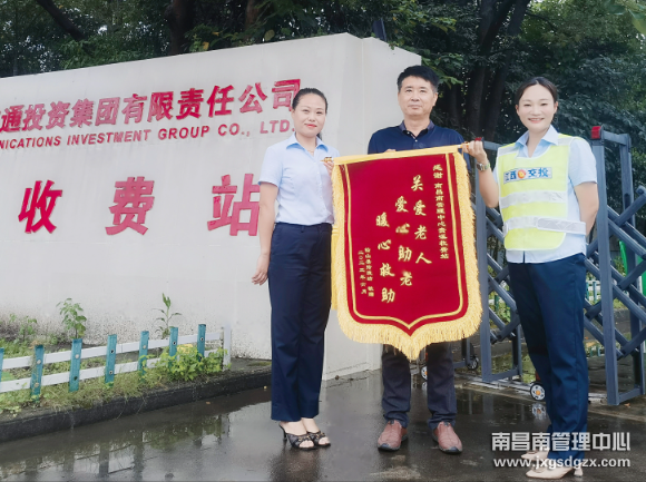 6月24日,家住铅山的叶先生、张女士专程赶到南昌南管理中心贵溪收费站,送来一面写有“关爱老人、爱心助老、暖心救助”的锦旗,表达对该站工作人员帮助高龄老父安全回家的感激之情。