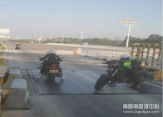 10月23日上午,四辆摩托车欲从南昌南中心进贤收费站上高速,该站工作人员发现后及时进行拦截劝返,成功消除了一起安全隐患。
