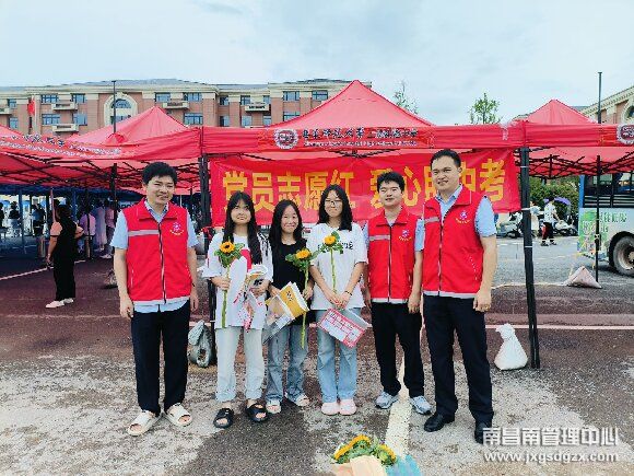 2024年中考如约而至,南昌南管理中心上饶收费所特色班组“弋阳红”志愿服务队来到弋阳县华东实验中学门口,为考生和家长们送上美好祝福,为考生加油打气。