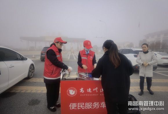 1月17日,受大雾天气影响,南昌南管理中心乐安北收费站实行大雾天气临时交通管制,该站立即组织青年志愿者们积极行动,为滞留乘客送上暖心服务。