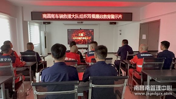 南昌南车辆救援大队党支部组织观看廉政教育警示片